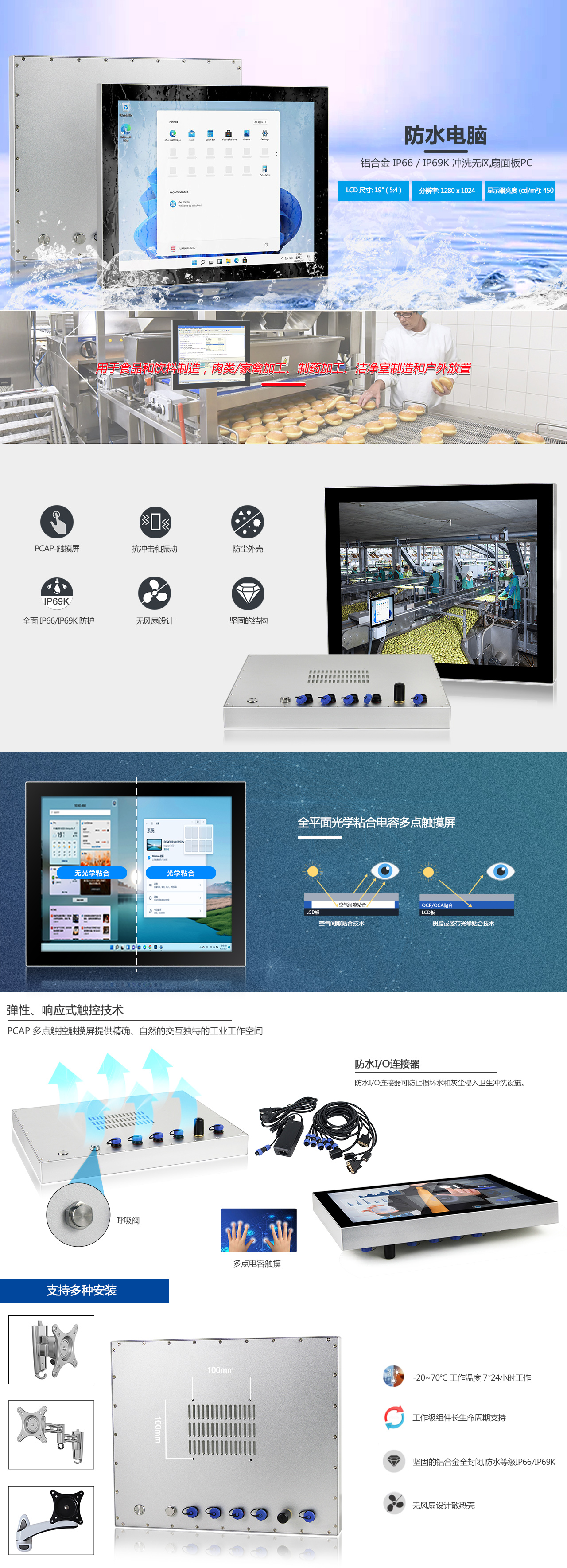 - 工业级19" SXGA LCD屏,50k背光寿命