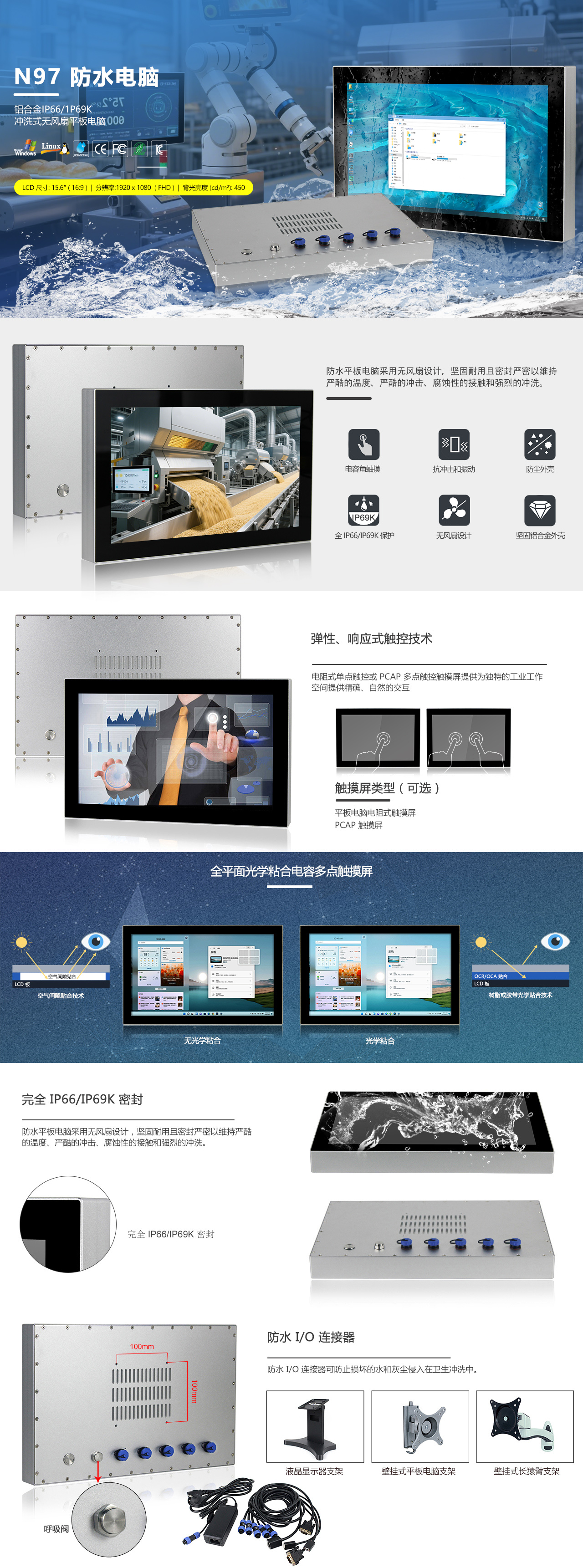 - 工业级15.6" FHD LCD屏,50k背光寿命