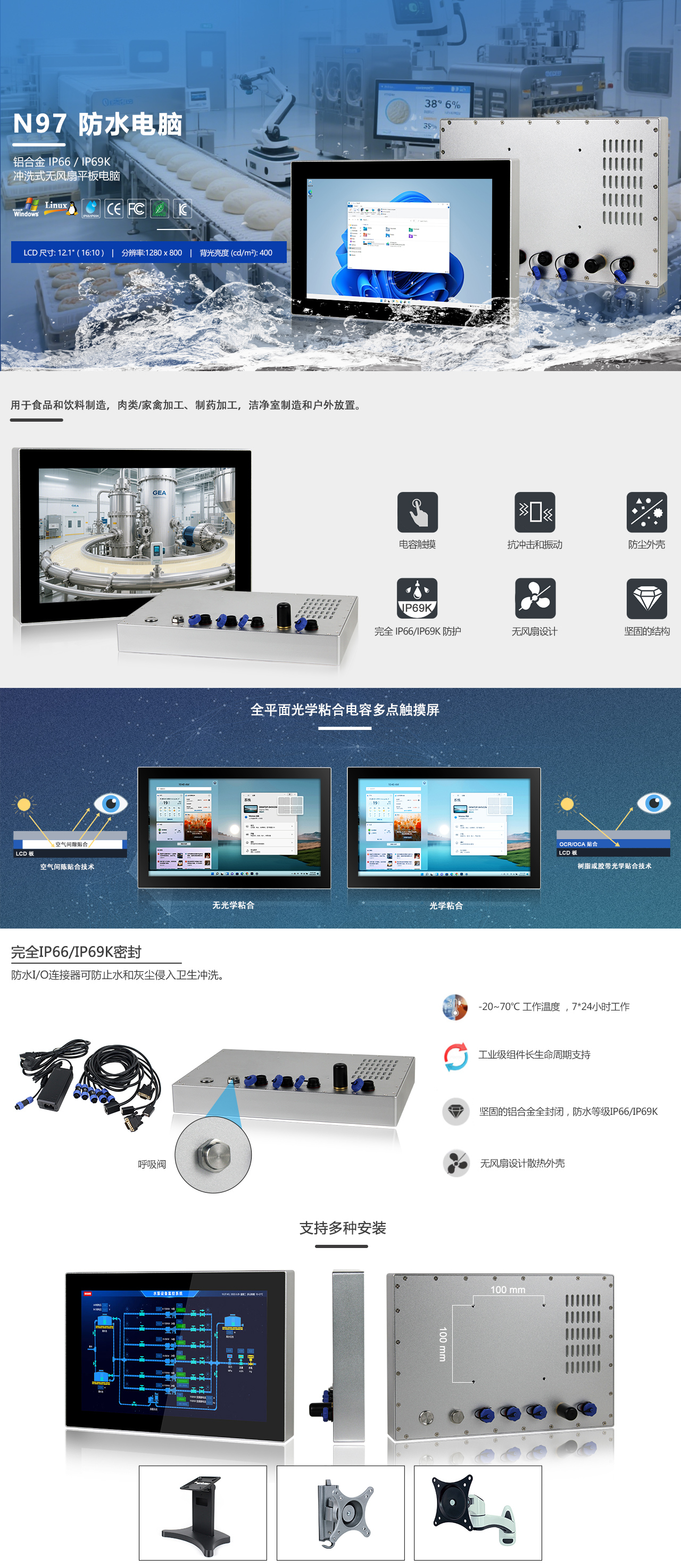 - 工业级12.1" WXGA LCD屏,50k背光寿命
