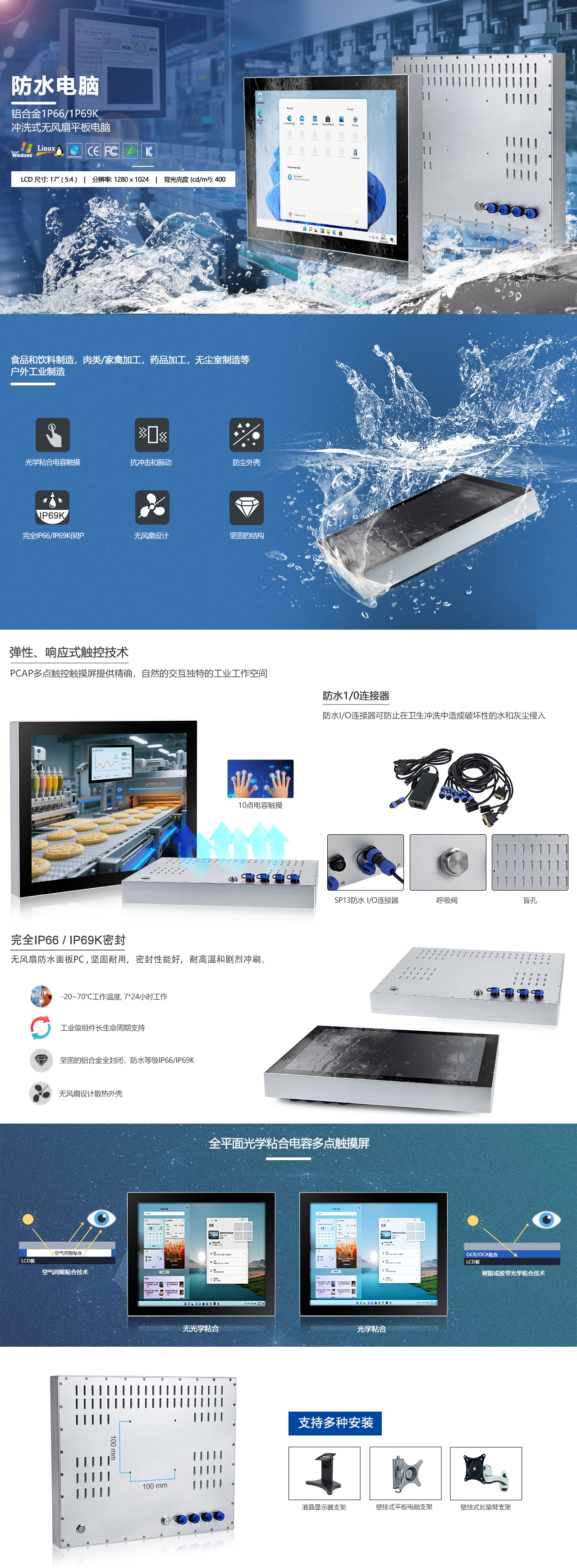 - 工业级17" SXGA LCD屏,50k背光寿命
